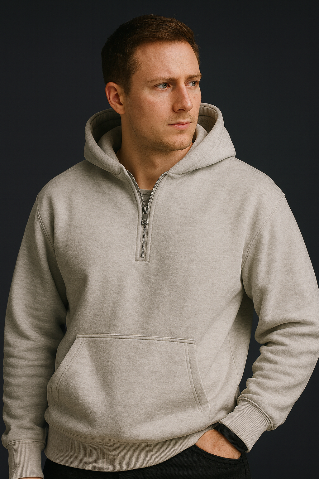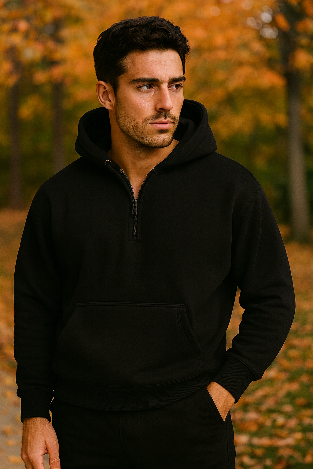 A casual fit fleece-lined quarter zip hoodie designed for everyday comfort and style.